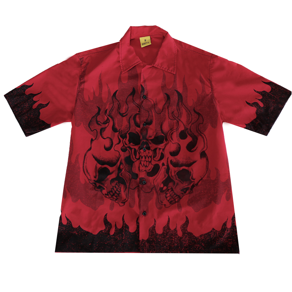 CAMISA DE BOTAO TRIPLE SKULL VERMELHA